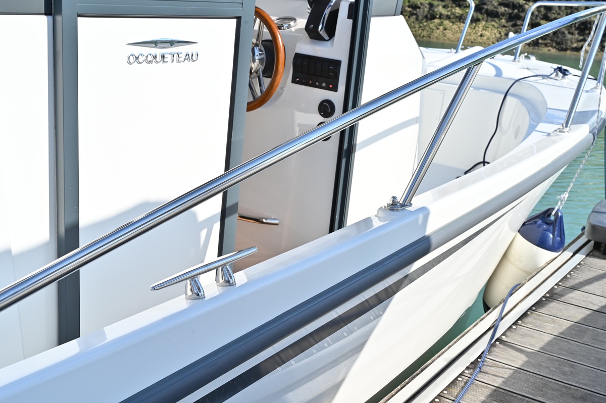 - Listón de protección de casco / Pasamanos en timonera / Parabrisas en cristal SECURIT / Bomba sentina manual / Bomba sentina eléctrica automática