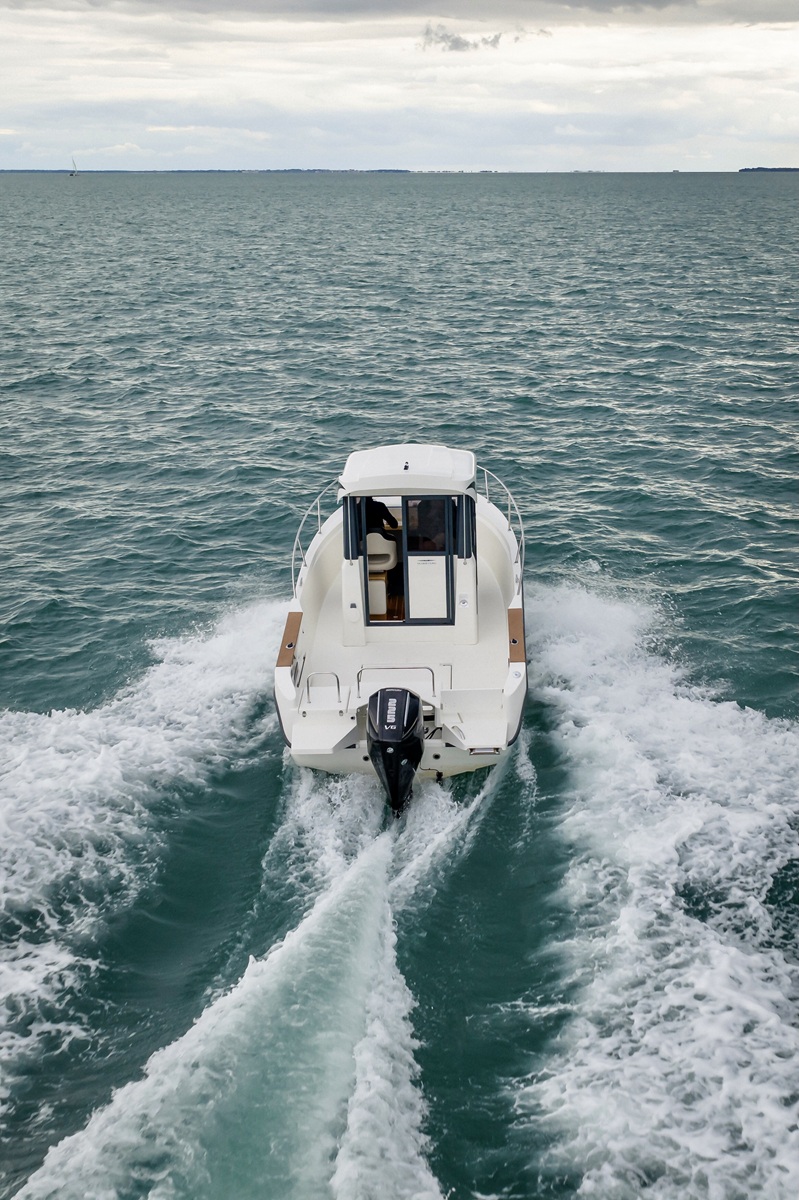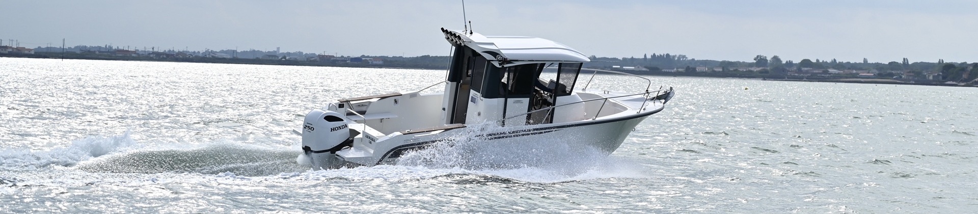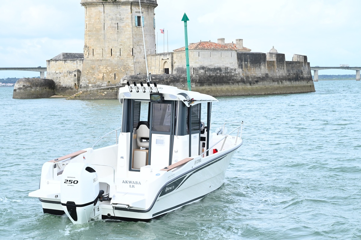 El tamaño de la bañera de 2,25 x 2,25 m² con una gran anchura de pasillos sin escalones para circular alrededor de la timonera, el vivero con regeneración de agua(*). , sus espacios para cañas en la bañera y en la cabina son importantes elementos que los pescadores aprecian.